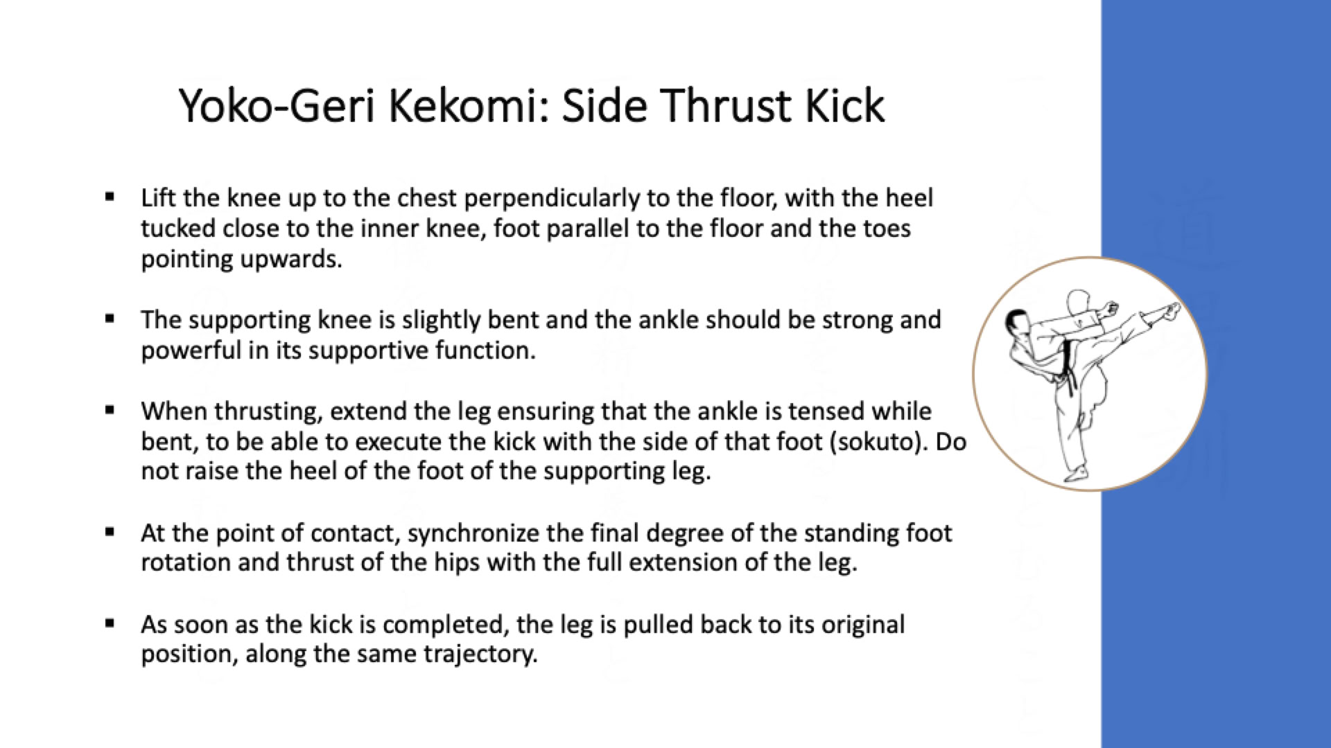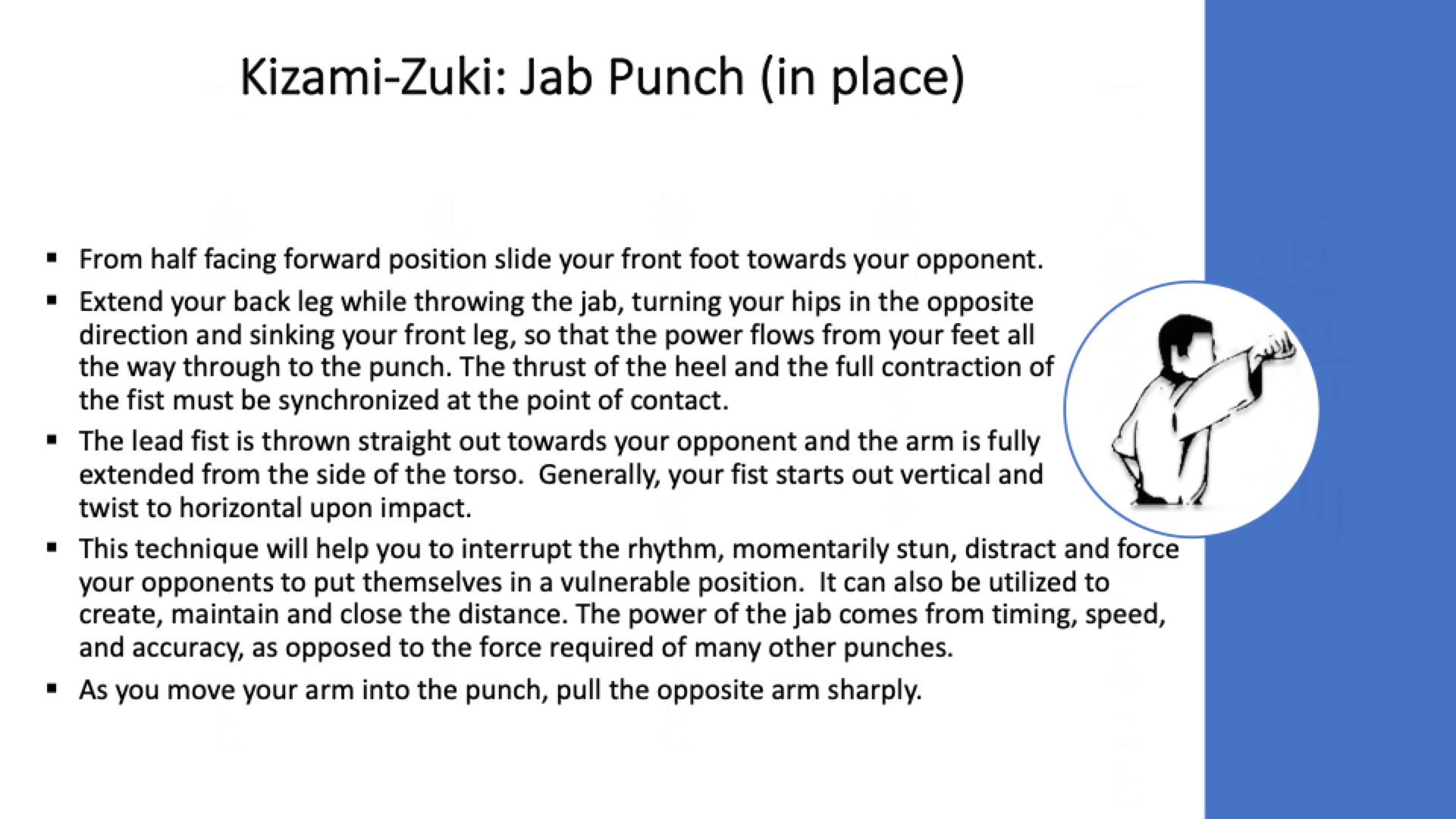 The technique involves bringing the rear leg forward (kick feint) and then snapping the leg back while throwing a reverse punch, resulting in greater power behind the punch that can effectively surprise opponents with its quickness and unpredictability. If you miss the target, it might expose you to potential counterattacks by compromising your balance and defense stance. For this reason, the karate version is closer to the ground, performed with a shorter but longer jump and a relatively more contained centerline posture (based on the application) than other full contact fighting styles.