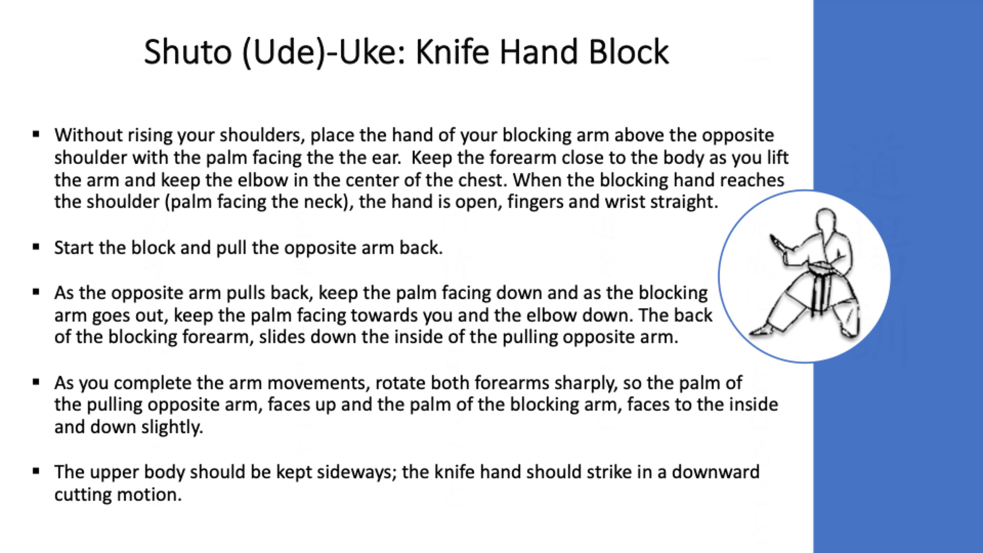 To use an augmented block in karate (morote-uke), one arm supports the elbow or wrist of the other, creating a more connected and powerful block by channeling power from the entire body, rather than just the one arm.