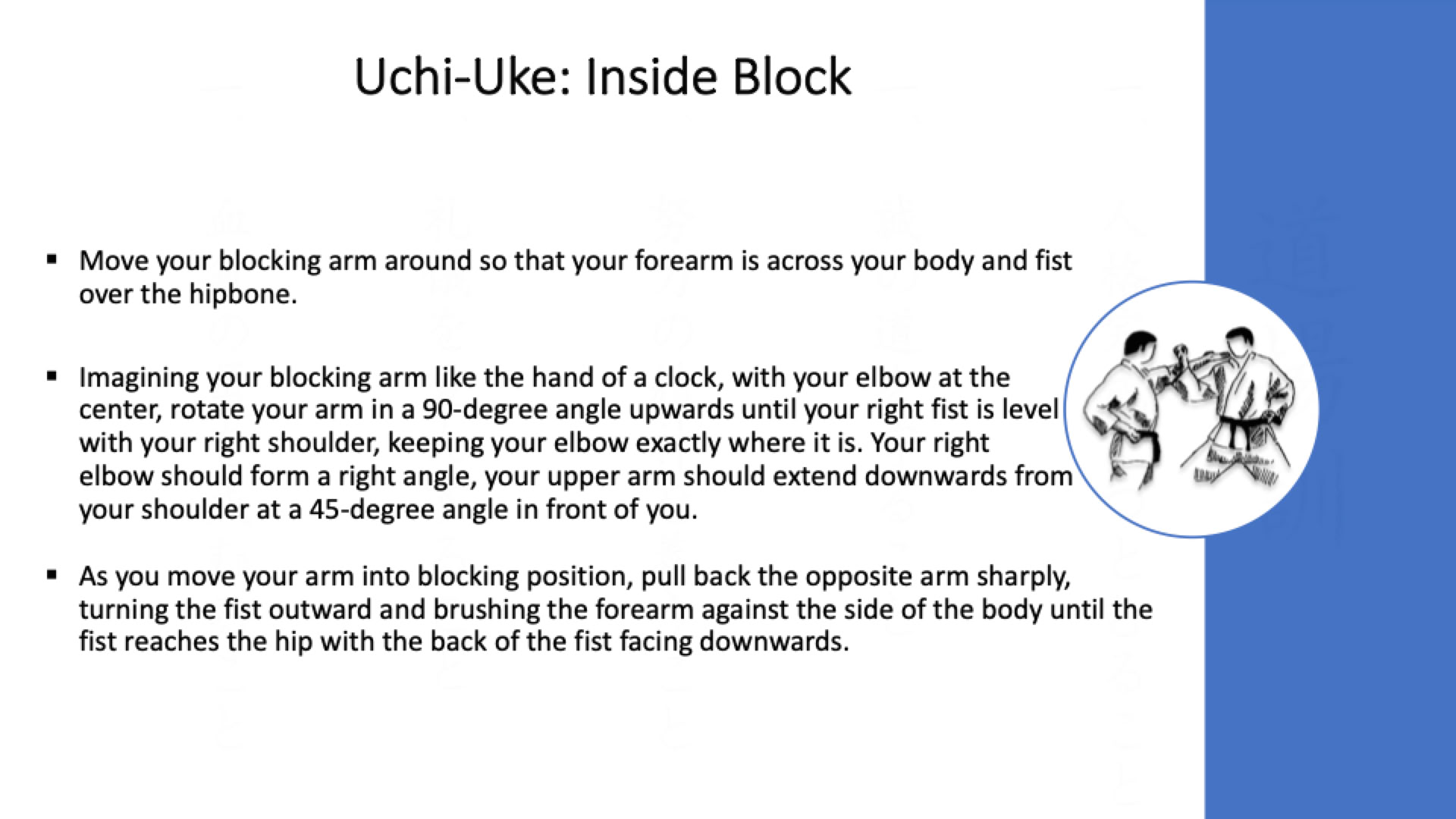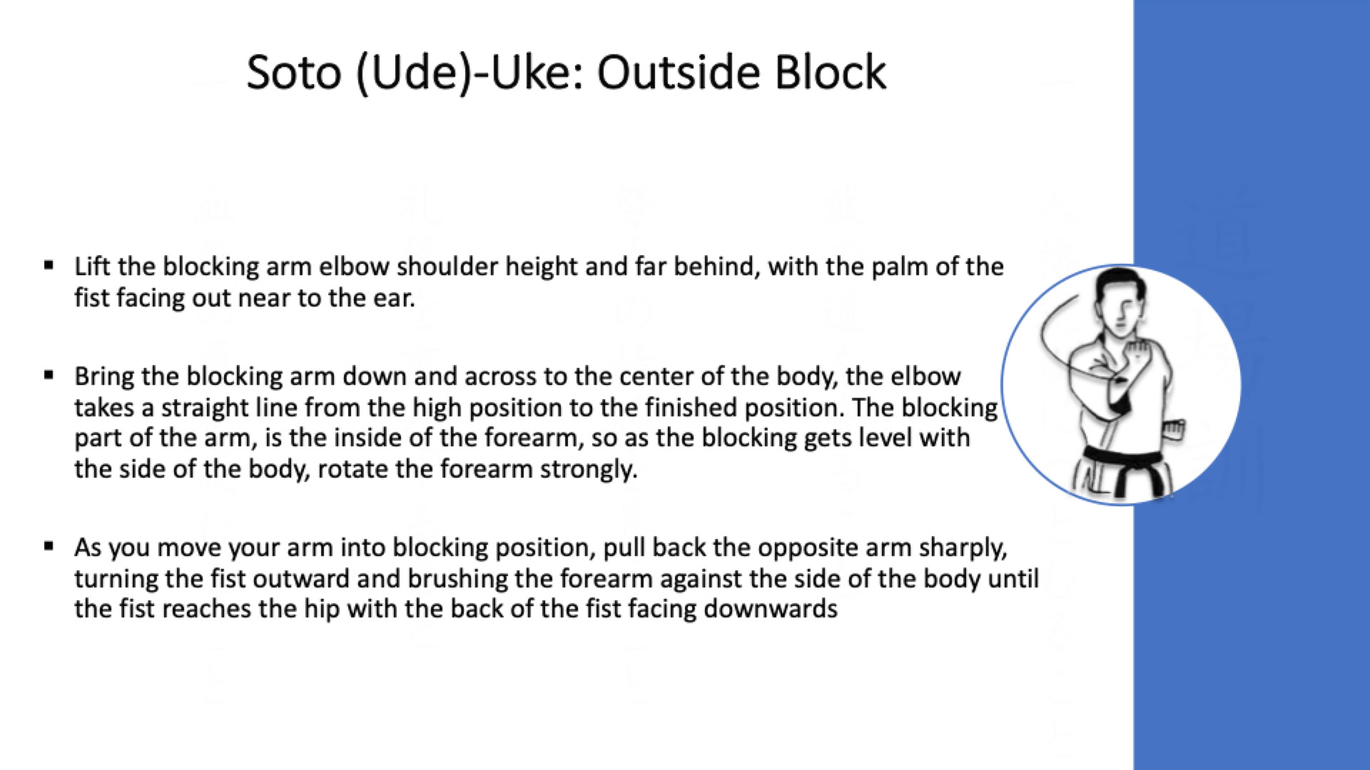 To use an augmented block in karate (morote-uke), one arm supports the elbow or wrist of the other, creating a more connected and powerful block by channeling power from the entire body, rather than just the one arm.