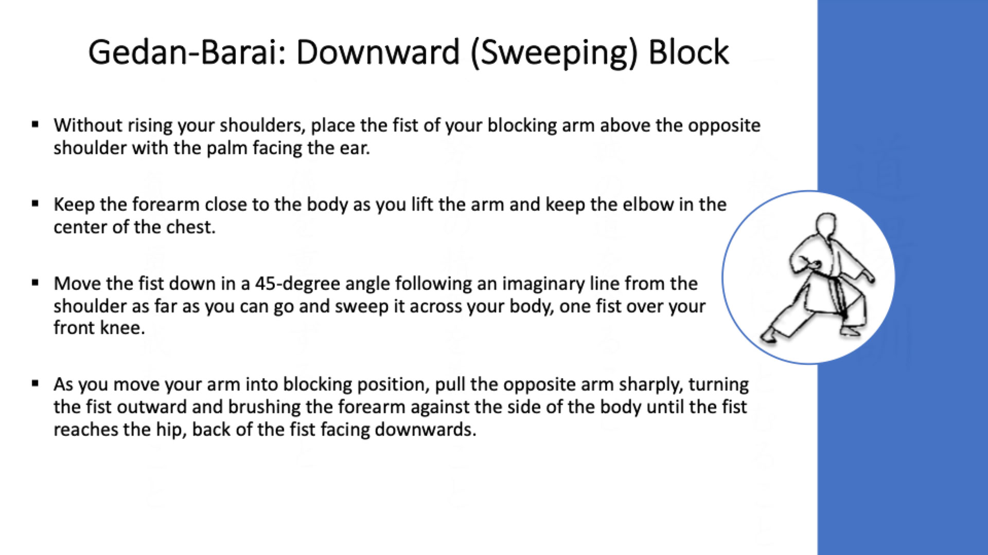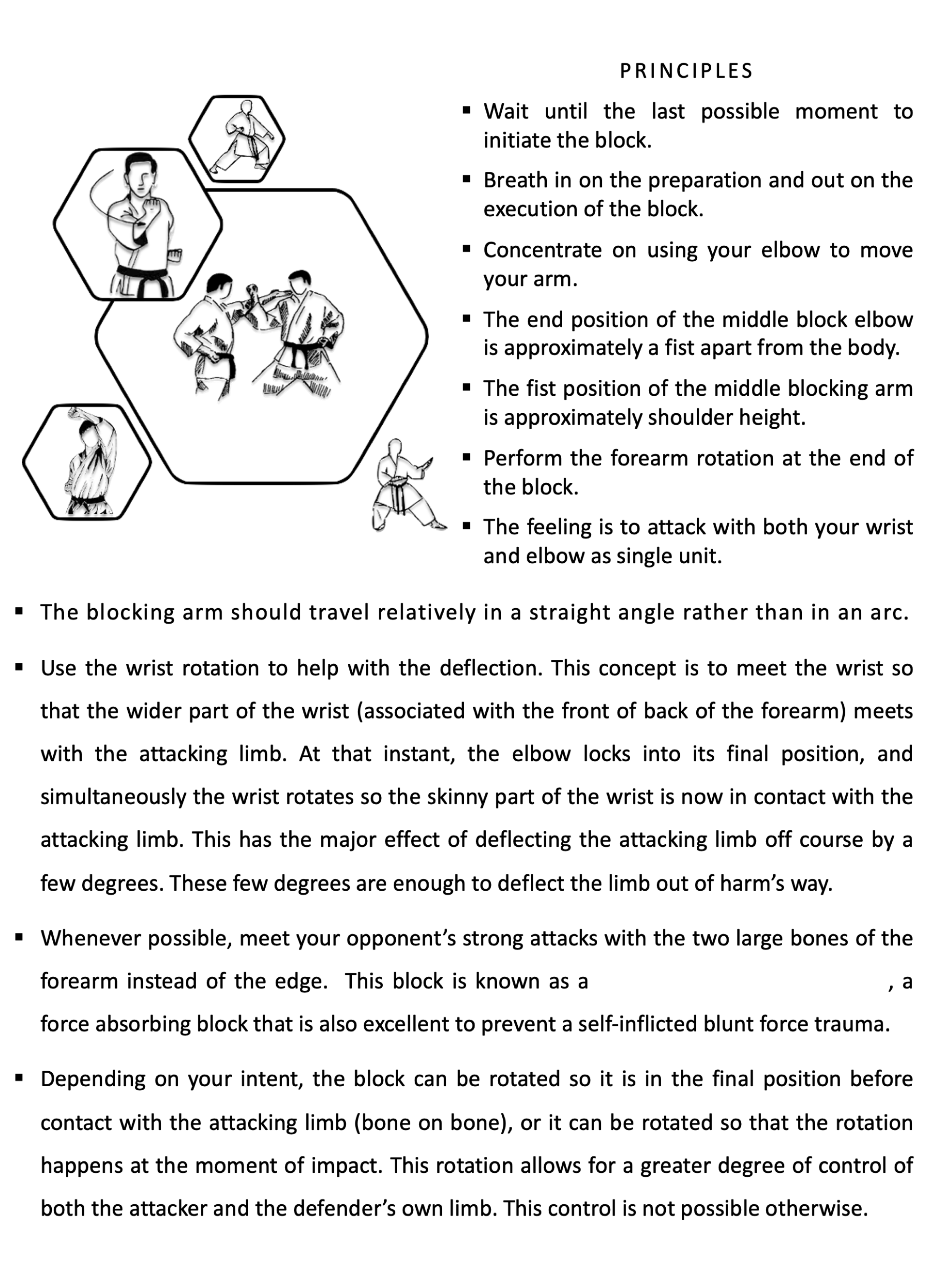 Augmented blocks can be used to defend against heavier attacks, intercept an opponent's arm or leg, or transition into a strike, grab, or throw, often involving a dynamic combination of blocking, body movement, and striking to control the attacker's limb and create an opportunity for a follow-up.