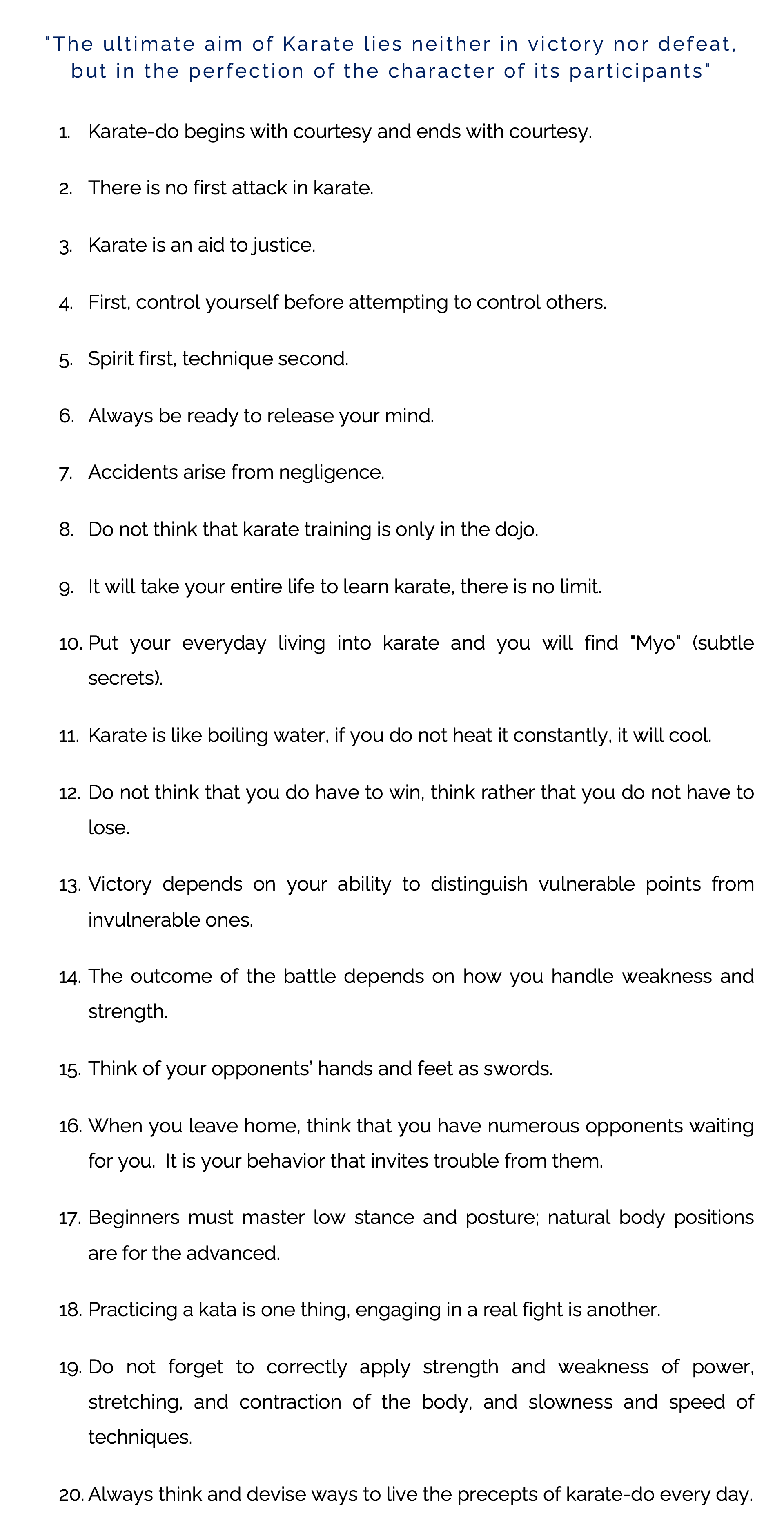 Master Itosu’s Tode Precepts